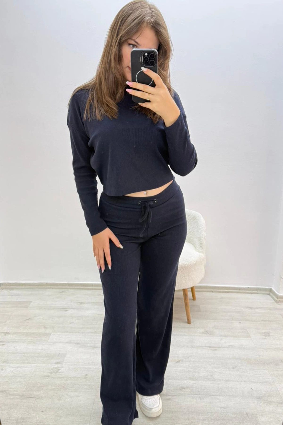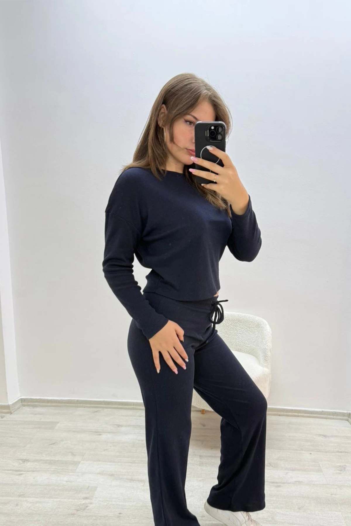 Mihrim Butik markasının tasarladığı lacivert renkli Kaşkorse Eşofman Takımı, rahatlığı ve şıklığı bir arada sunuyor. Hem spor yaparken hem de günlük hayatta kullanabileceğiniz bu takım ile tarzınızı konuşturabilirsiniz. İşte Kaşkorse Eşofman Takımı'nın öne çıkan özellikleri: - Yüksek bel kesimli kaşkorse detayıyla feminen bir görünüm. - Eşofman altı ve üstü uyumlu lacivert renk. - Pamuklu kumaş yapısıyla gün boyu rahatlık. - Esnek yapıya sahip kumaş, hareket özgürlüğü sunar. - Kol ve bacak kısımlarında lastik detaylar, daha sağlam bir oturuş sağlar. - Sade tasarımıyla şık ve spor kombinler oluşturabilirsiniz. - S, M, L beden seçenekleri ile her vücut tipine uyum sağlar. Mihrim Butik Kaşkorse Eşofman Takımı, spor ve şıklığı bir arada arayanların tercihi oluyor. Bu takım ile şehirde ve spor salonunda tarzınızı konuşturabilirsiniz.