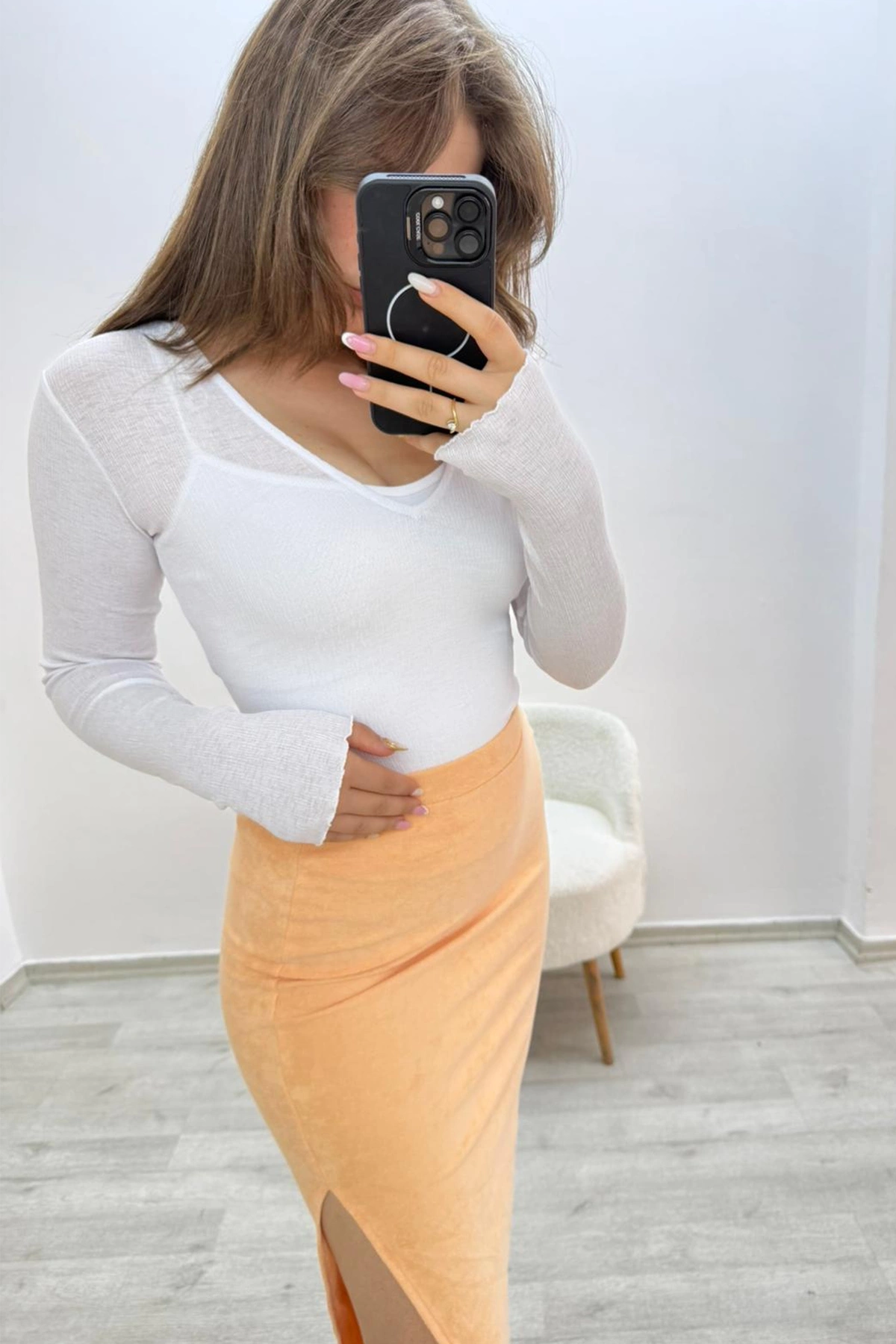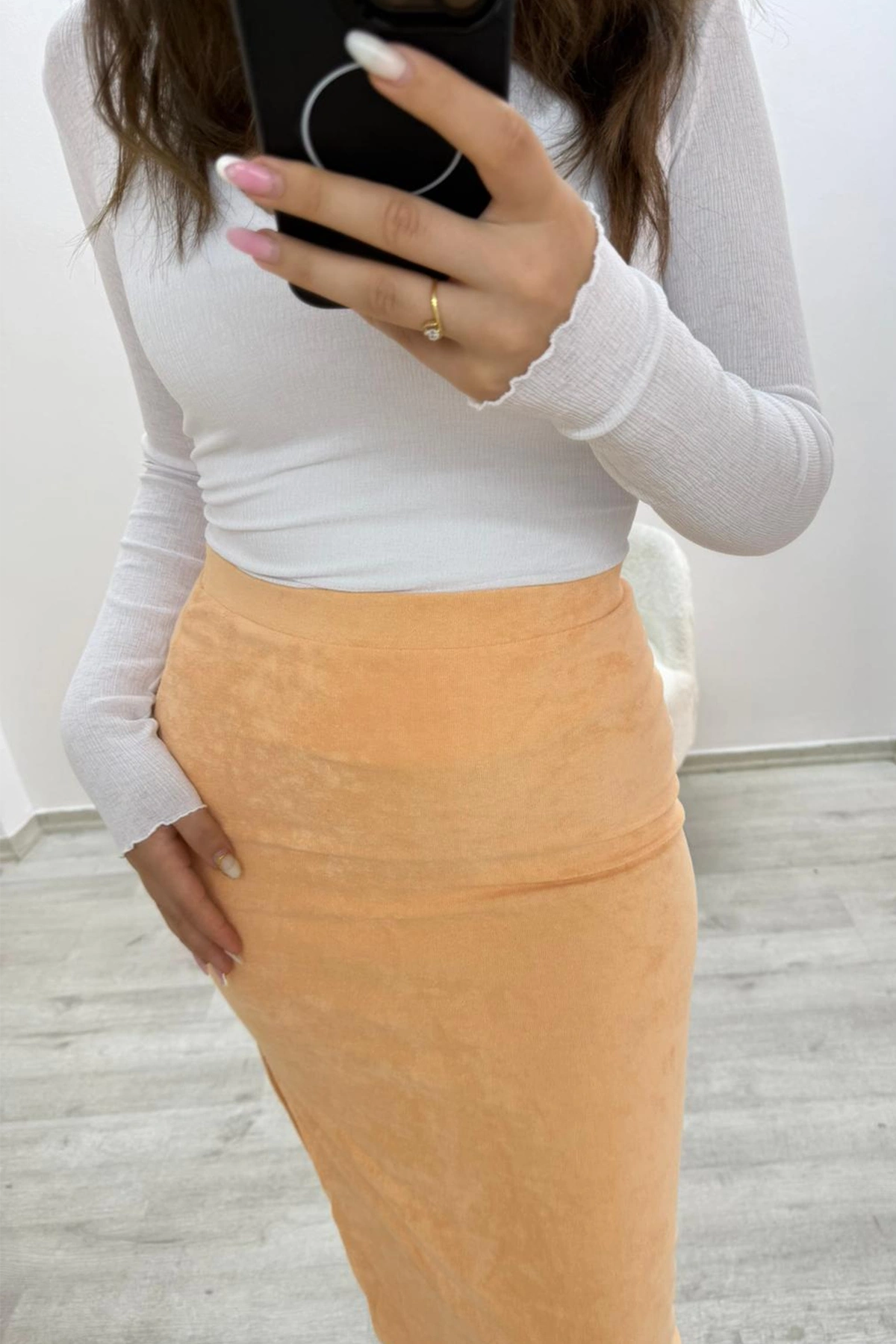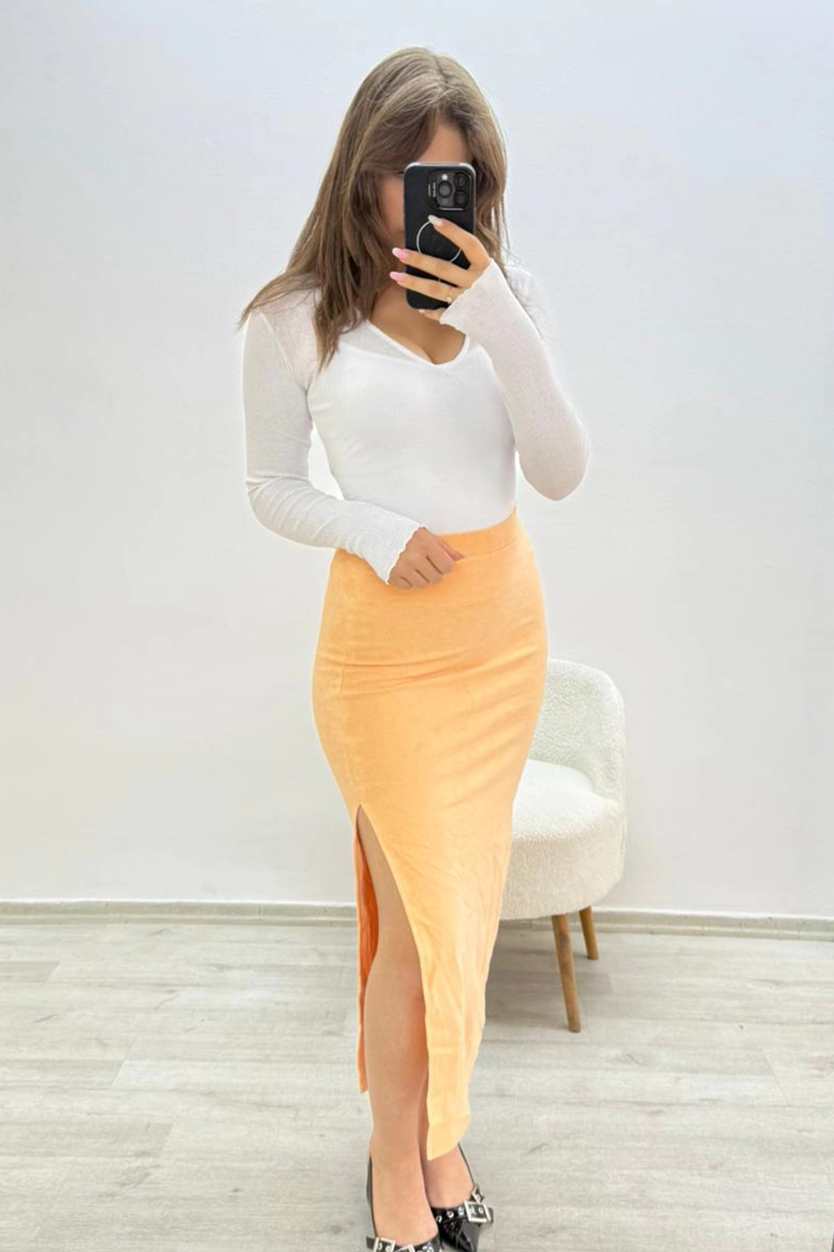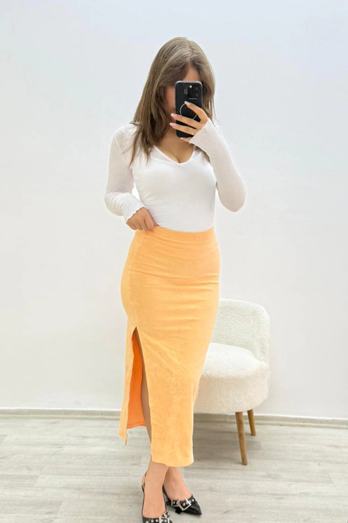 Mihrim Butik yandan yırtmaçlı beli lastikli havlu eteği, hem şık hem de konforlu bir seçenek arayanların tercihi olacak.